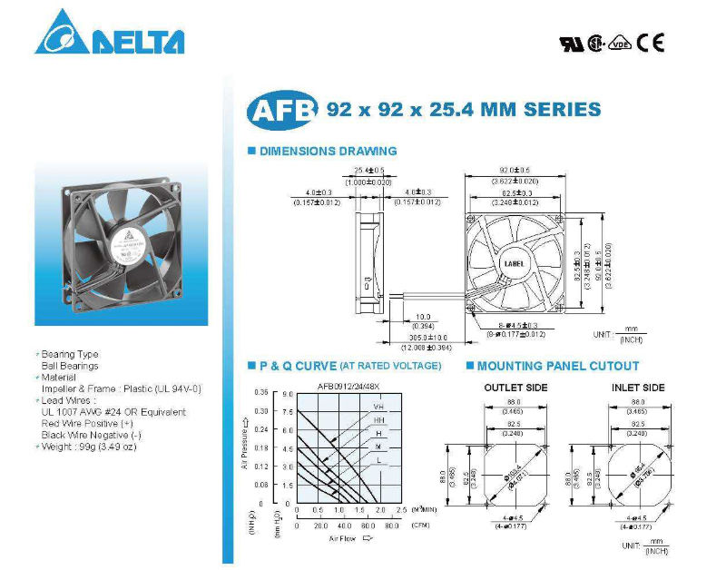 圖片僅供參考Original electric axial flow cooling fan AFB0924VH 24V DC cooling fan