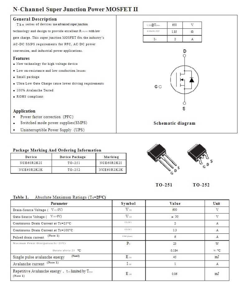 圖片僅供參考High voltage N-channel IGBT MOS tube spot original NCE60R2K2I TO251 best-selling product