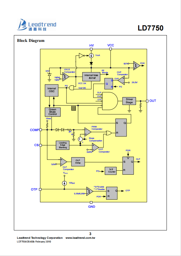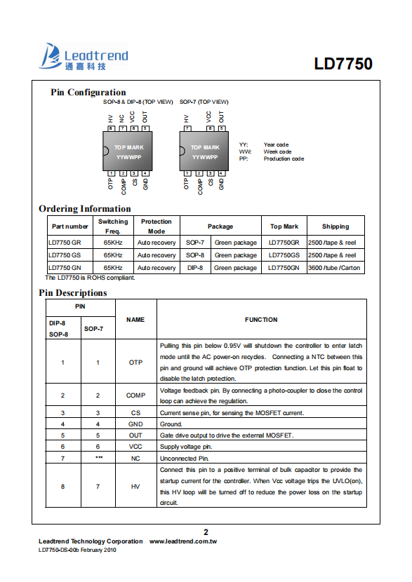 High Voltage Green-Mode PWM Controller with Over Temperature Protection SOP-7