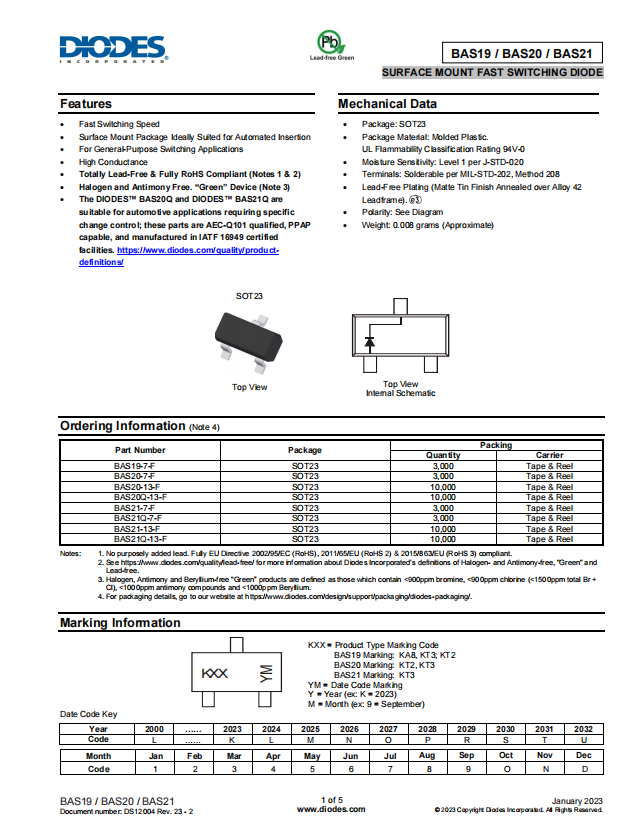 ? The DIODES? BAS20Q and DIODES? BAS21Q are suitable for automotive applications requiring specific change control; these parts are AEC-Q101 qualified, PPAP capable, and manufactured in IATF 16949 certified facilities.
