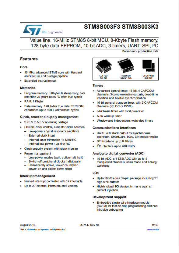 ? 16 MHz advanced STM8 core with Harvard architecture and 3-stage pipeline