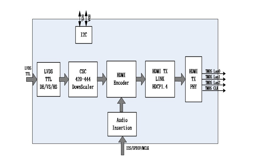 ·GSV1016 is a TX transmitter compatible with HDMI1.4/2.0, with an LVDS/TTL data bus.