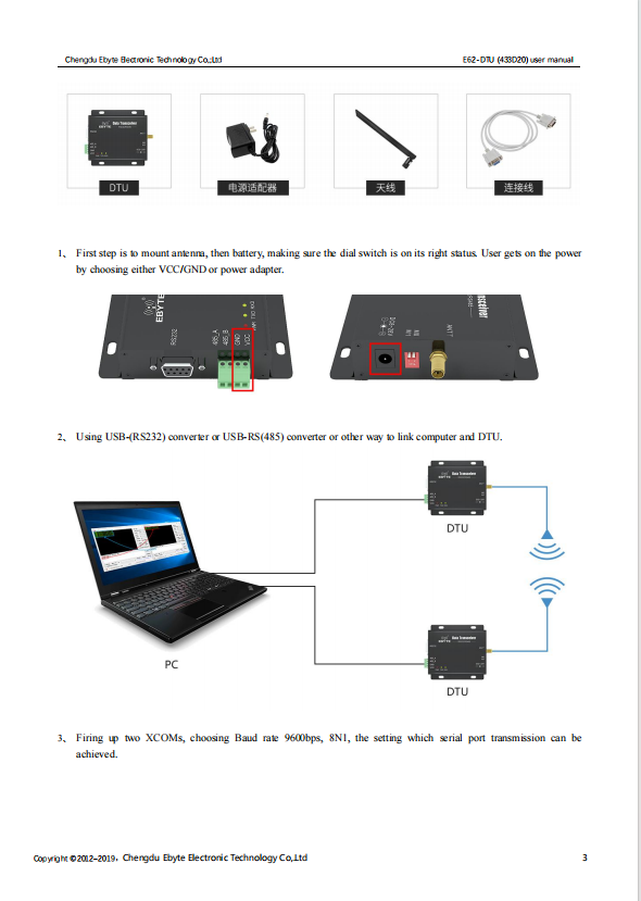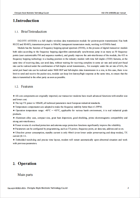 E62-DTU (433D20) is a full duplex wireless data transmission module for point-to-point transmission( Has both RS232 and RS485), transmission