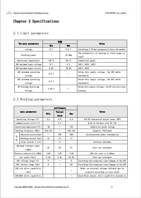 | Distance | 10km | Clear and open environment, antenna gain 5dBi, antenna height 2.5 meters, air rate 2.4kbps (This parameter is measured in the open area of Chengdu urban area) |