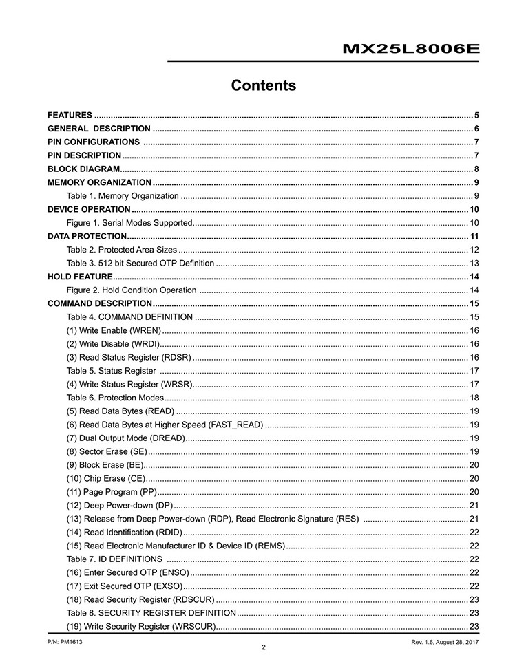 The device feature a serial peripheral interface and software protocol allowing operation on a simple 3-wire bus. The three bus signals are a clock input (SCLK), a serial data input (SI), and a serial data output (SO). MX25L8006EM2I-12G Serial access to the device is enabled by CS# input. When it is in Dual Output read mode, the SI and SO pins become SIO0 and SIO1 pins for data output. The device provides sequential read operation on whole chip. After program/erase command is issued, auto program/erase algorithms which program/erase and verify the specified page or sector/block locations will be executed. Program command is executed on byte basis, or page basis, or word basis for erase command is executes on sector, or block, or whole chip basis. |