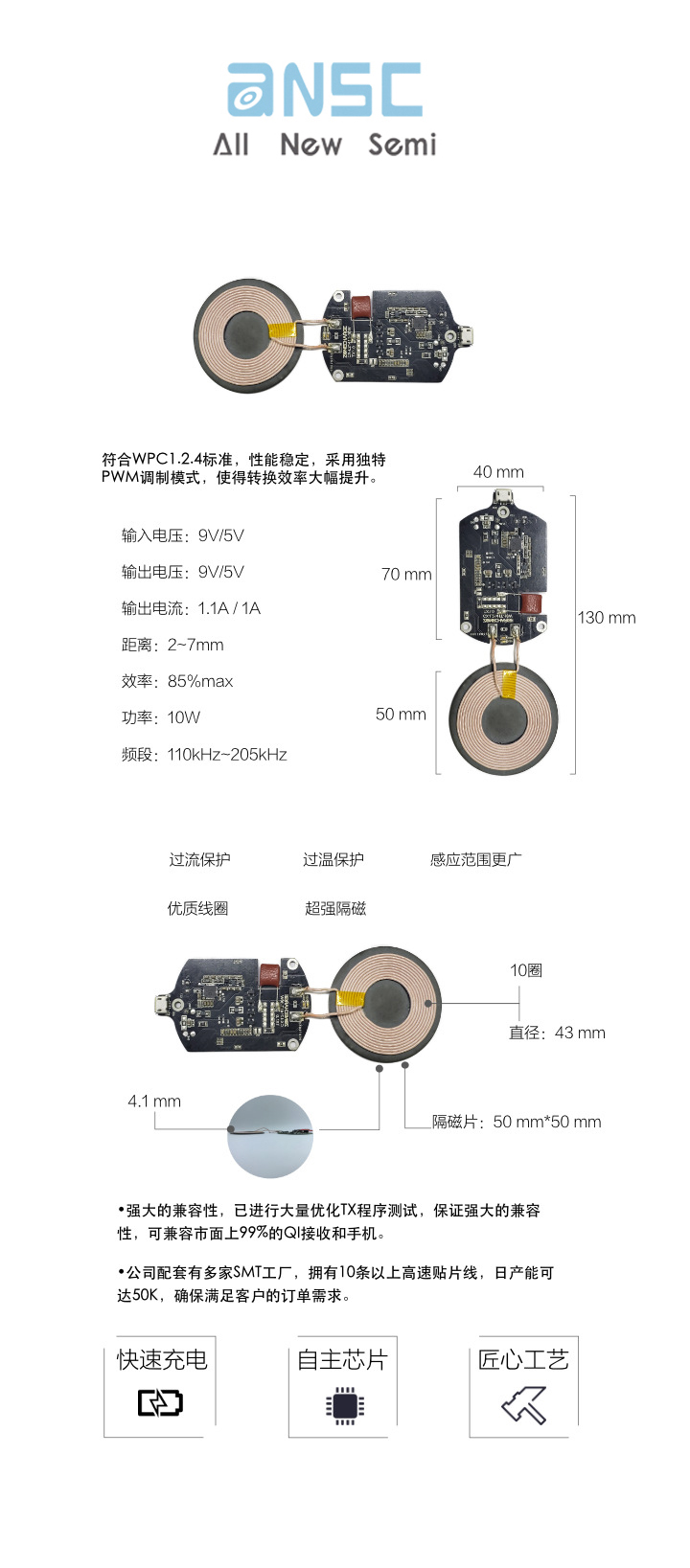 圖片僅供參考10W Wireless Charging PCBA Solution Module QI Wireless Charging Solution Wireless Charger Transmitting Module