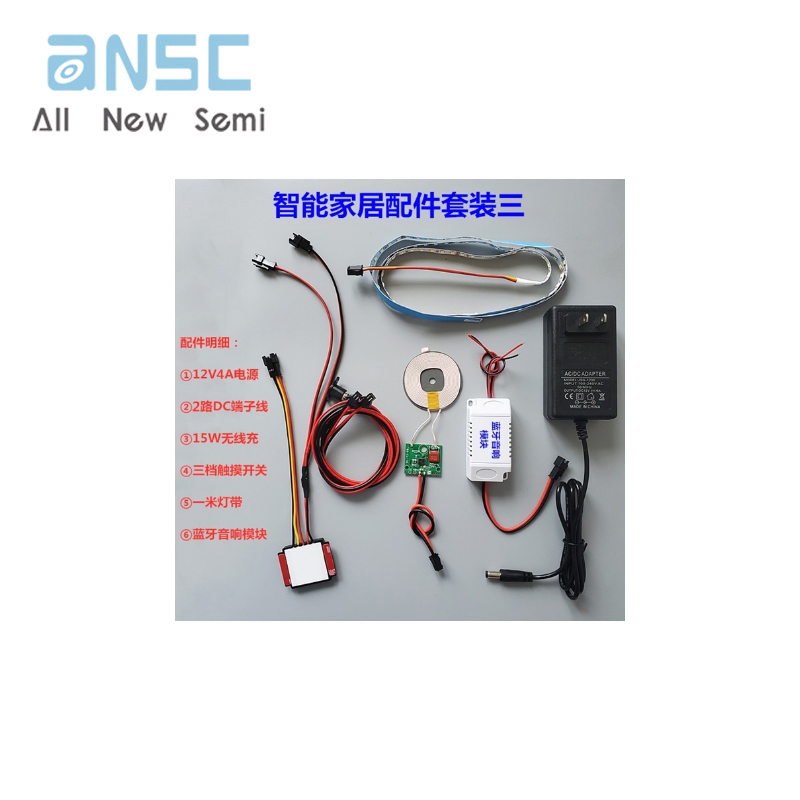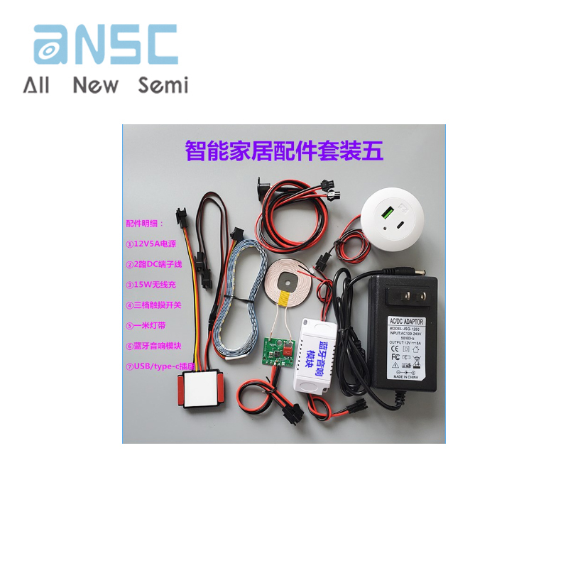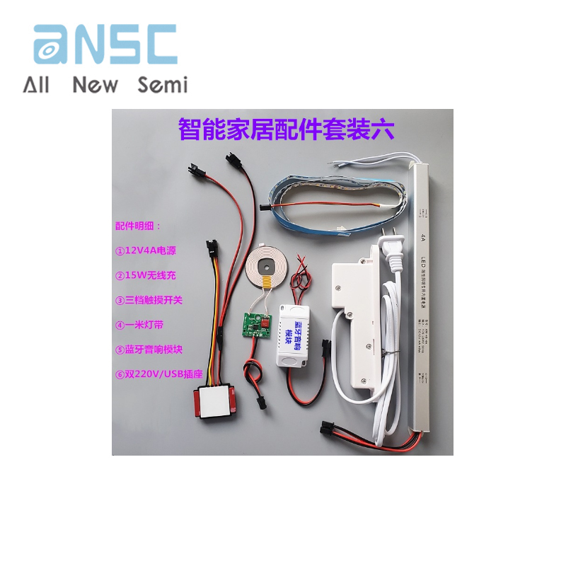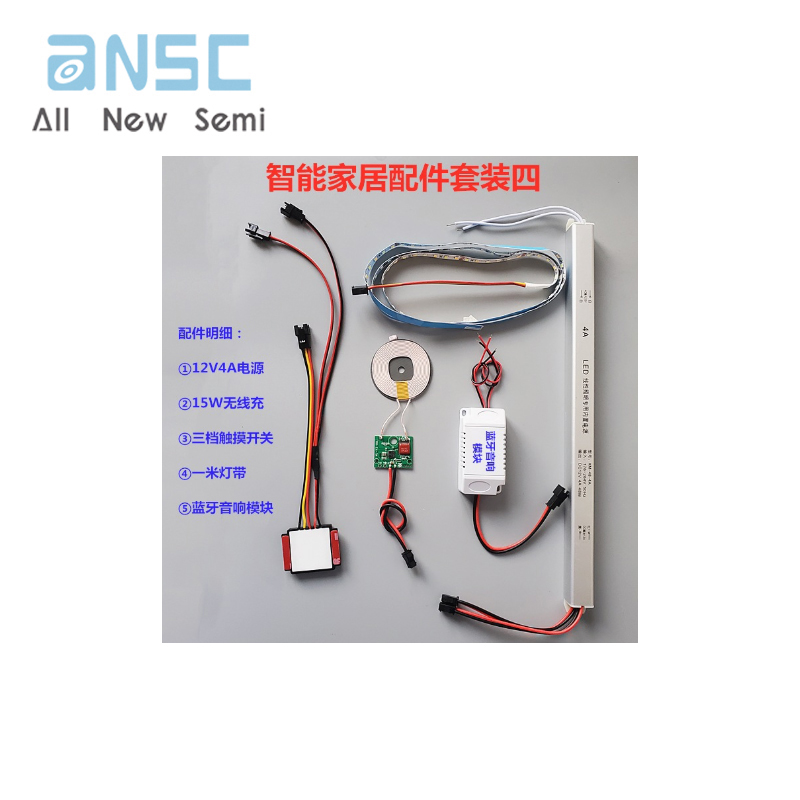 圖片僅供參考Smart bedside table electronic accessories 15W wireless charging suitable for LED lights with touch switch Bluetooth audio module