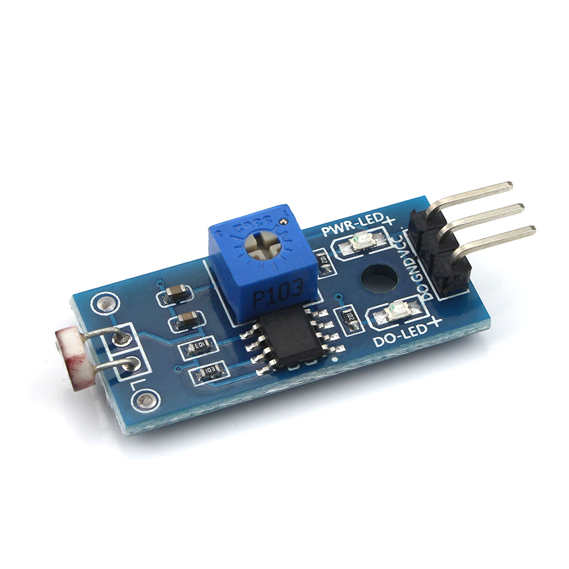 1. The photoresistor module is sensitive to ambient light and is generally used to detect the brightness of surrounding light, triggering microcontrollers or relay modules, etc;