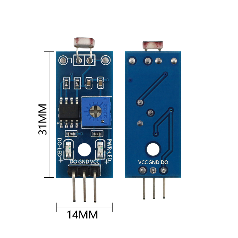 3. The DO output terminal can be directly connected to the microcontroller to detect high and low levels, thereby detecting changes in environmental light brightness;