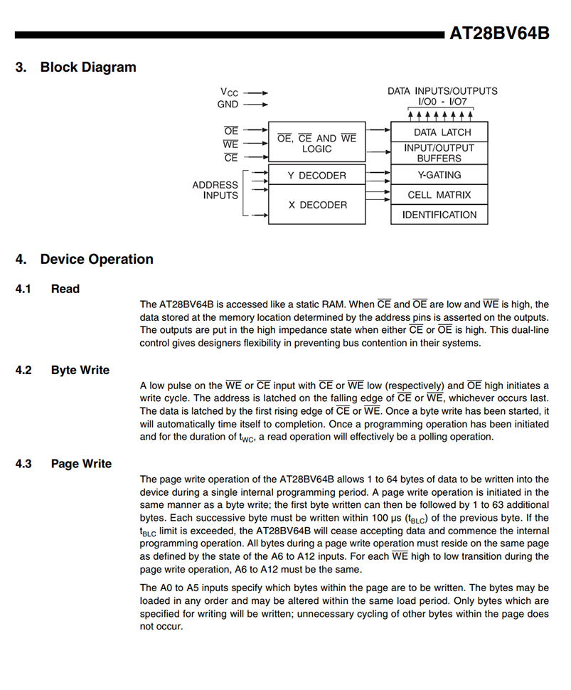 Features ? Single 2.7V to 3.6V Supply ? Hardware and Software Data Protection ? Low Power Dissipation – 15 mA Active Current – 20 μA CMOS Standby Current ? Fast Read Access Time – 200 ns ? Automatic Page Write Operation – Internal Address and Data Latches for 64 Bytes – Internal Control Timer ? Fast Write Cycle Times – Page Write Cycle Time: 10 ms Maximum – 1 to 64 Byte Page Write Operation ? DATA Polling for End of Write Detection ? High-reliability CMOS Technology – Endurance: 100,000 Cycles – Data Retention: 10 Years ? JEDEC Approved Byte-wide Pinout ? Commercial and Industrial Temperature Ranges ? Green (Pb/Halide-free) Packaging Option |