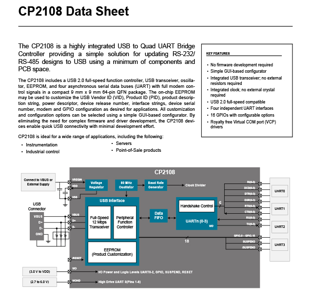 CP2108-B01-GM Controllers Interface ICs applications.