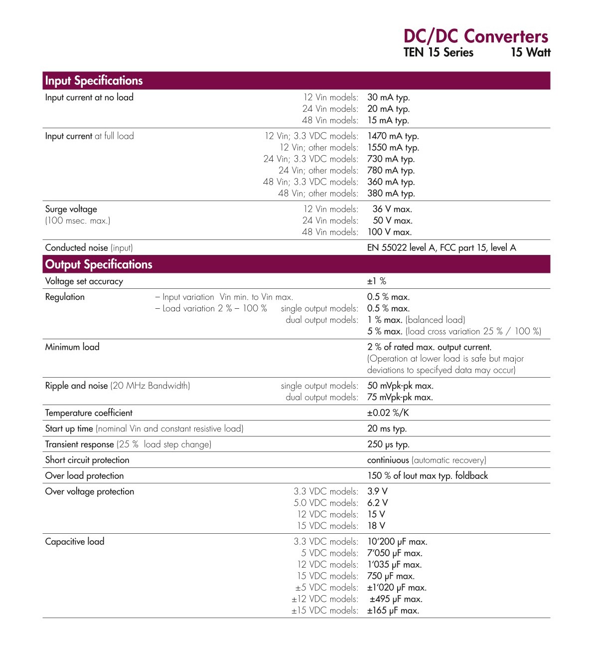 | Base Product Number | TEN 15 |